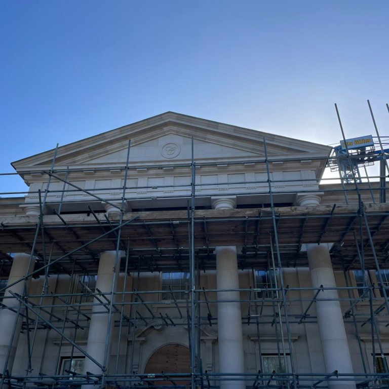 Pediment tympanum under construction, showing mild steel 'A' frame