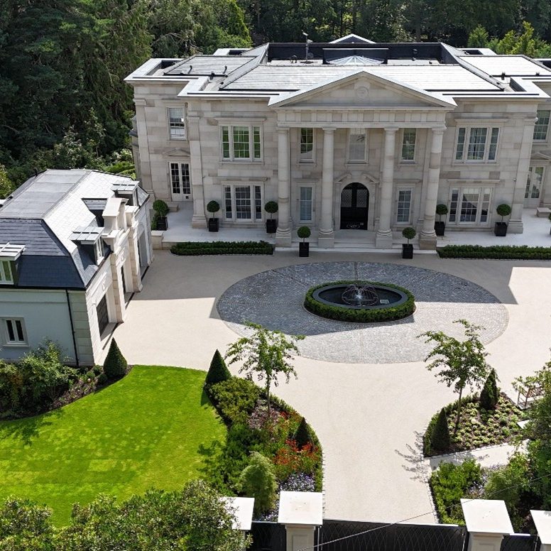 Restoration of hard landscaping to notable formal gardens; restoration of original tennis pavilion; extension to original house; new 150m long retaining wall & balustrade; new tennis pavilion & colonnade; new banja & grotto; new hard landscaping to woodland gardens; new corinthian temple; front forecourt planters; new portico & new forecourt fountian.